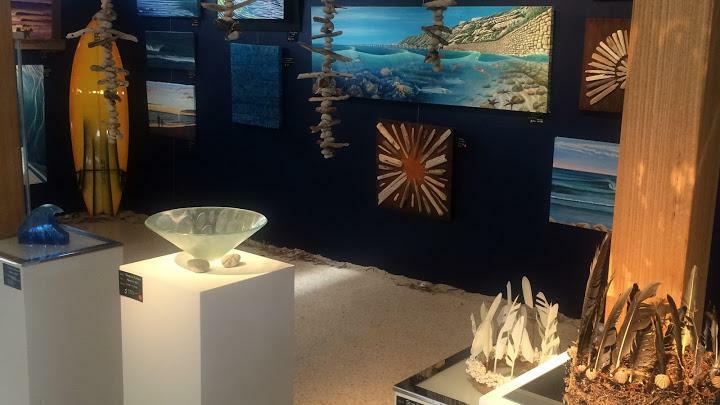 Boutique art gallery cafe in Marion Bay owned by surf artist Jason Swales and his silversmith partner Jasmine.